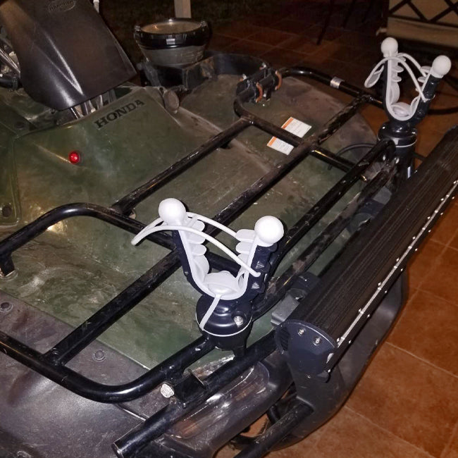 - FOR ATVS/UTVS/Bikes/Shooting Carts/etc - This set of 2 clamp-on holders is great for a variety of gear including guns, shovels, axes, and more.