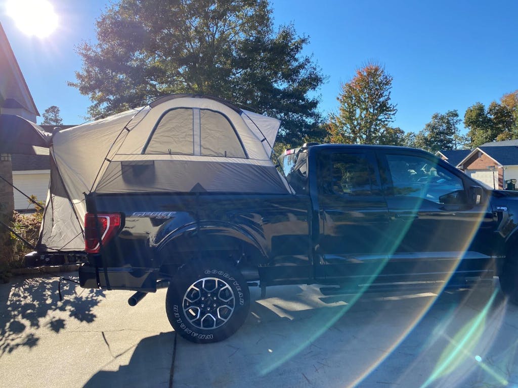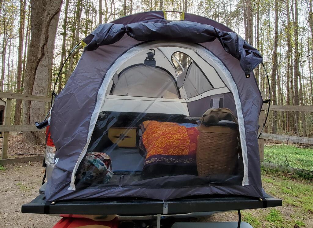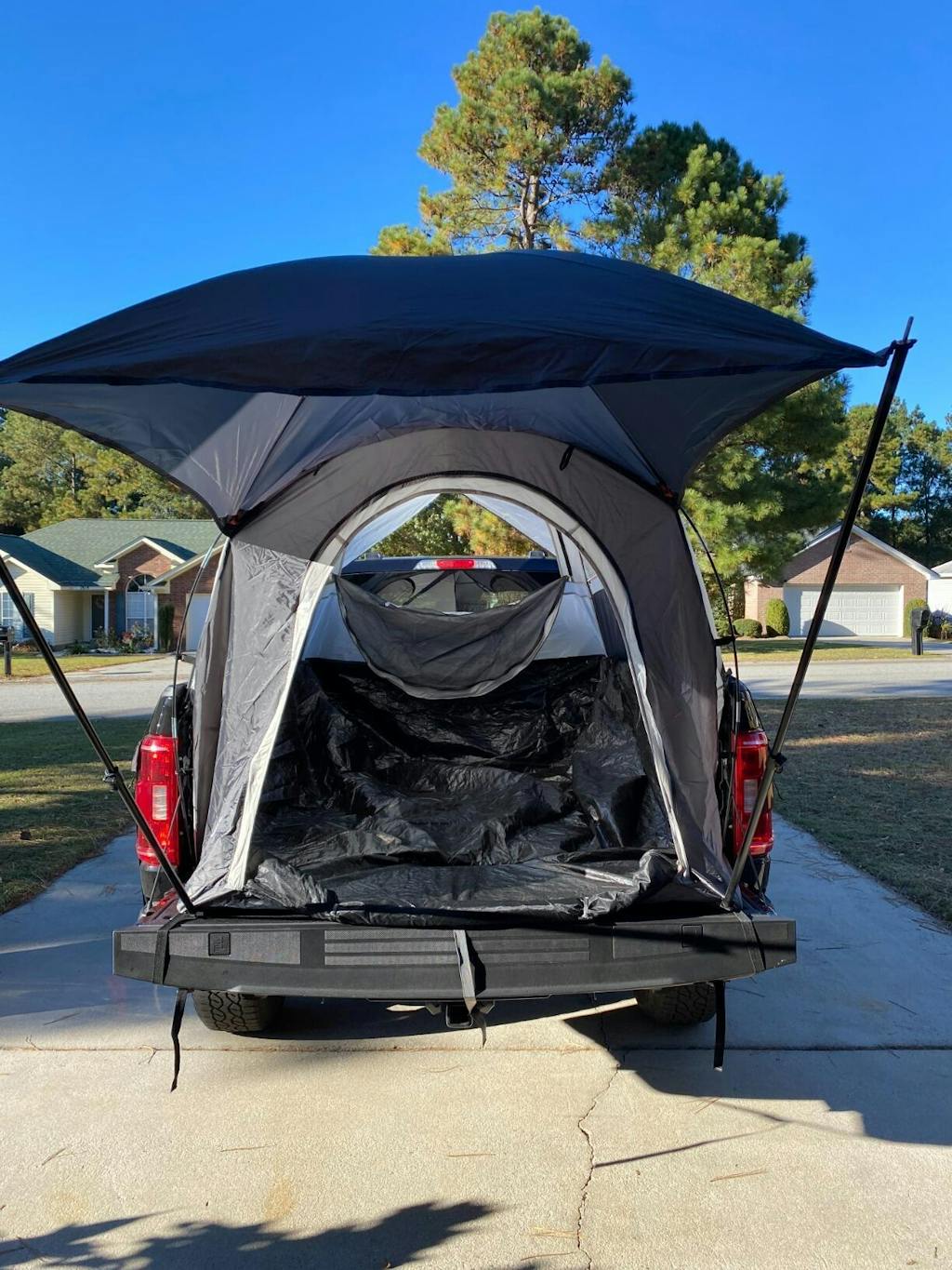 The tailgate canopy gives you a dry and comfortable landing area before moving into the tent.